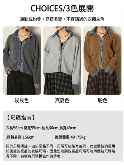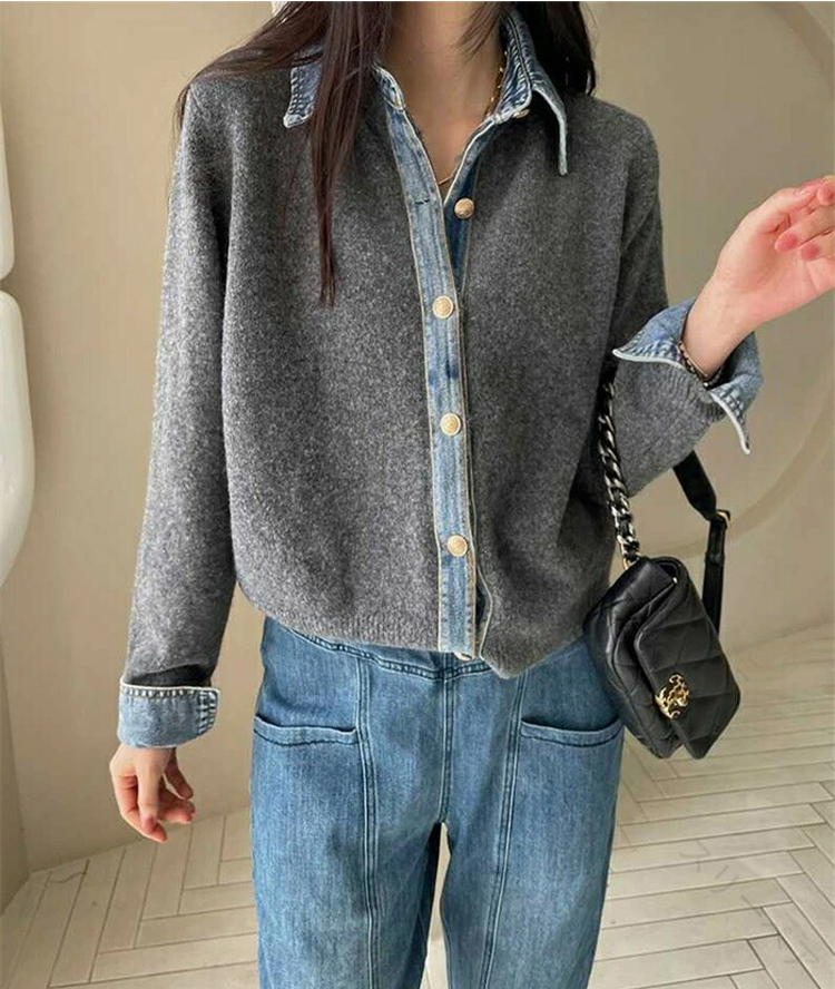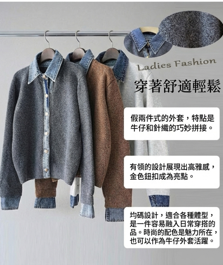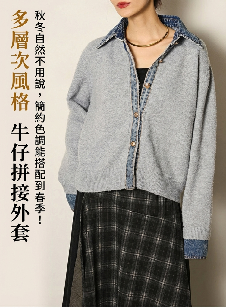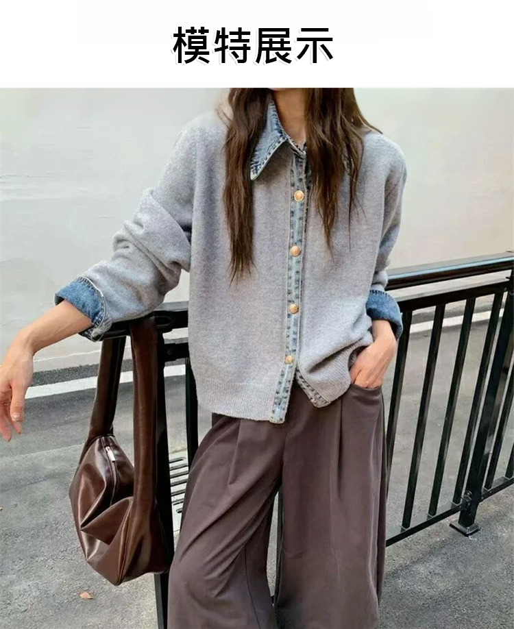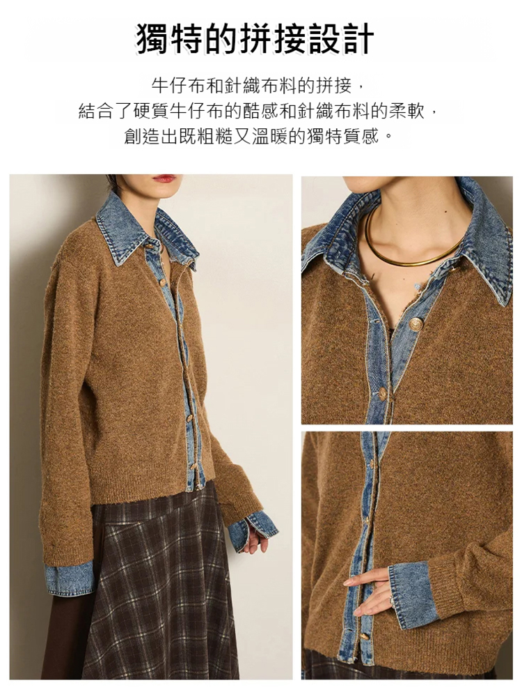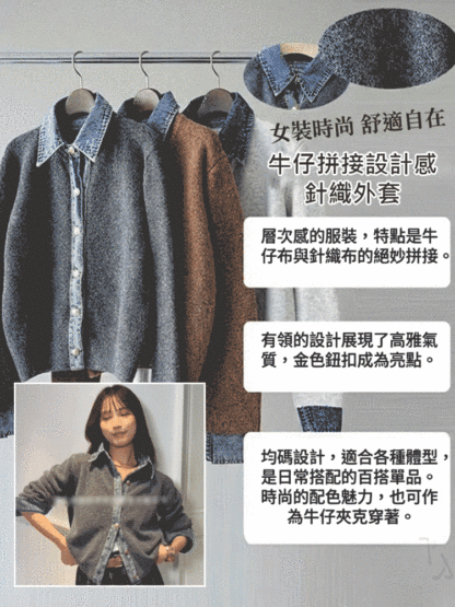 牛仔拼接設計感針織外套