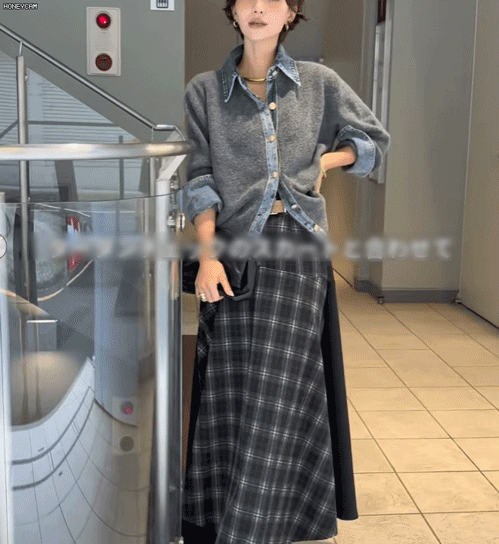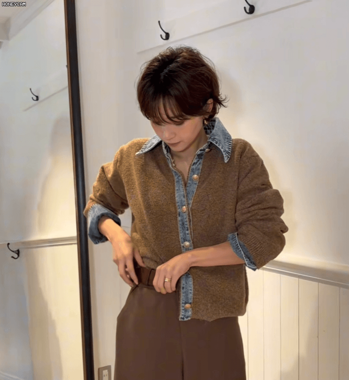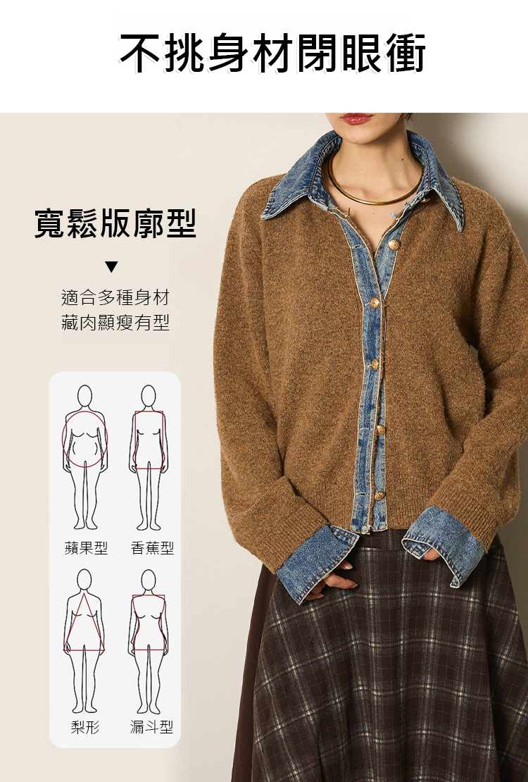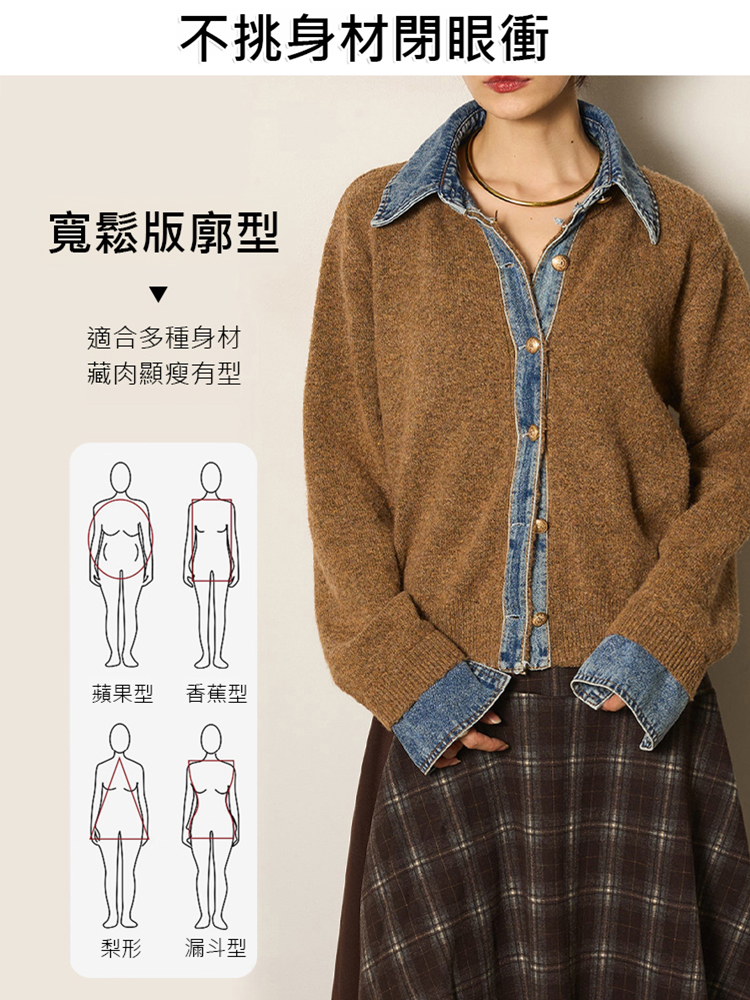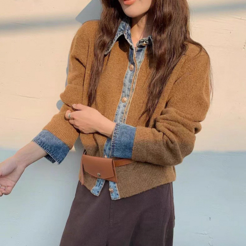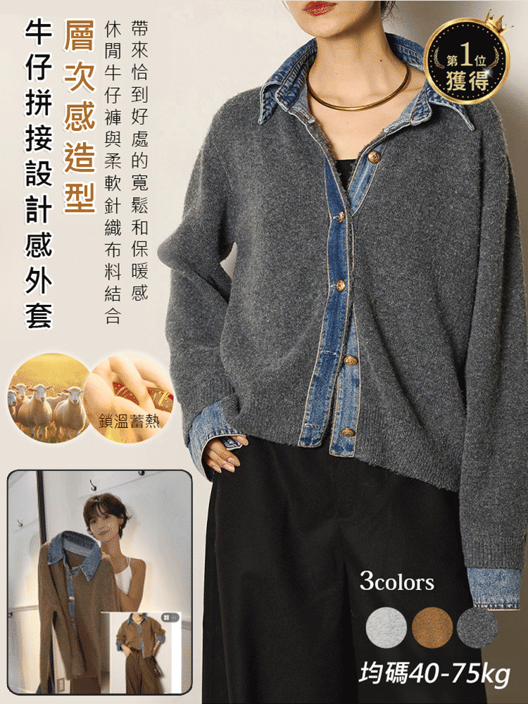 牛仔拼接設計感針織外套