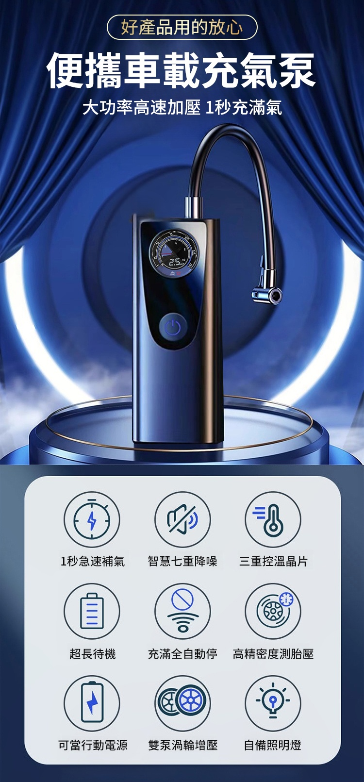 【高速加壓 1秒充滿氣】便攜大功率車載充氣泵