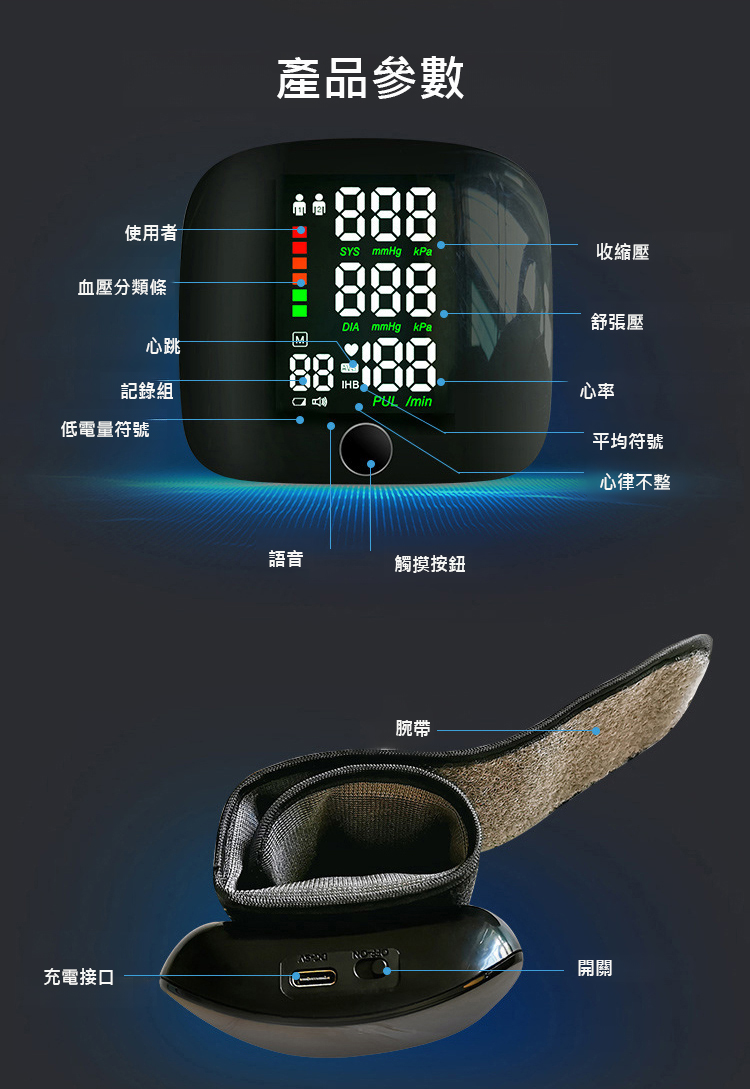 【語音大彩色螢幕】全自動手腕式電子血壓計